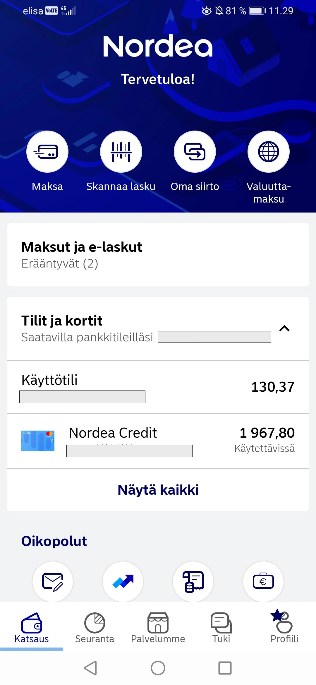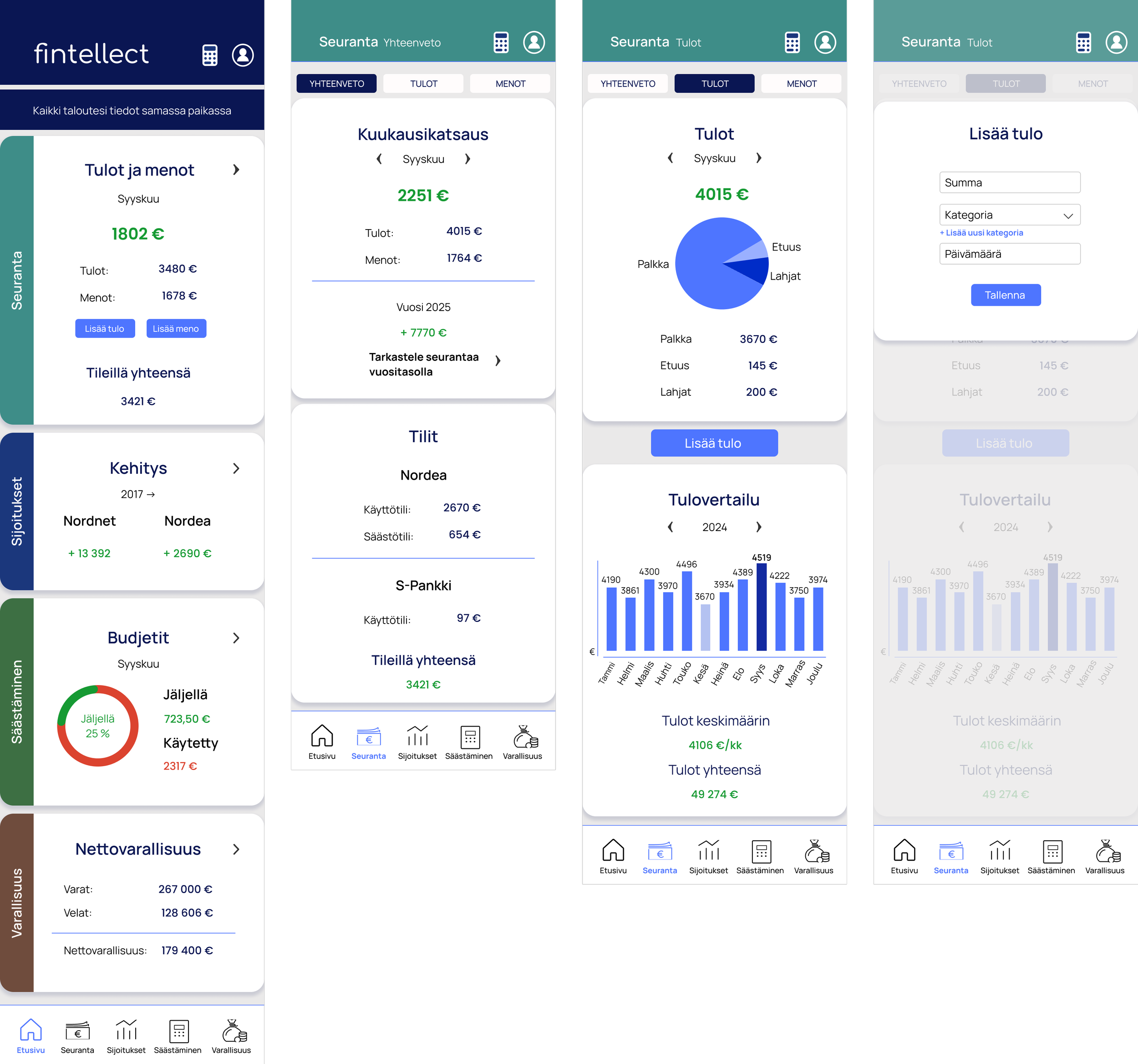 Benchmarking included a comparison of four applications: Nordea, Nordnet, S-Pankki and Monefy. Main aspects I investigetied were: